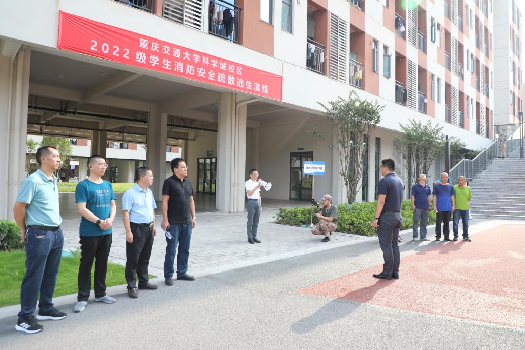 7月7日上午,科学城学院、武装部联合调江津区双福消防救援站在科学城校区学生礼园小区举行了“关注消防 珍爱生命”主题消防安全疏散逃生演练。2022级军训师连队指导员,参演、观摩学生,安保队员、宿舍管理员等600余人参加。科学城学院党总支书记、院长吴瑞指挥疏散演练。