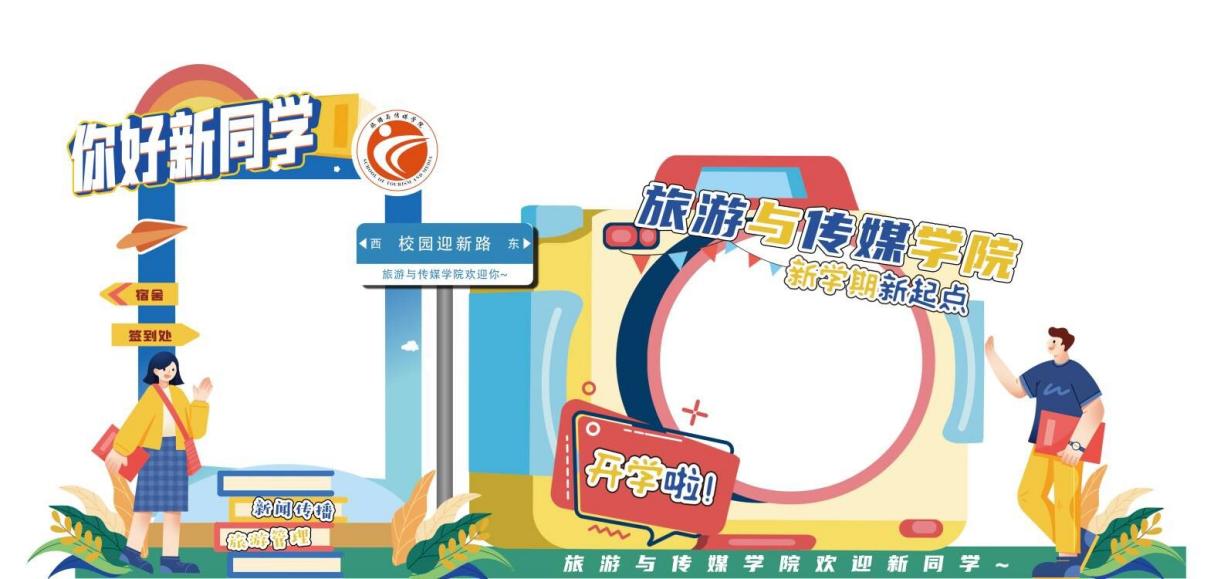 旅游与传媒学院设计的打卡墙
