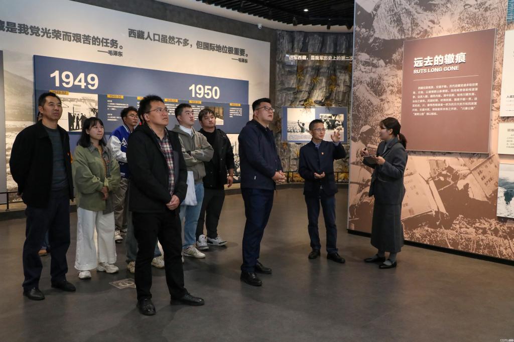 在成都川藏公路博物馆,党员们沉浸式参观了历史抉择、天路长歌、薪火相传等展厅,通过珍贵史料、筑路工具及建设影像等重温建设川藏公路的历史背景和艰苦卓绝的建设过程。聆听讲解的过程中,党员们深刻体会到了老一辈建设者逢山开路、遇水架桥的奋斗意志,纷纷表示要以筑路先辈为榜样,赓续红色血脉,传承弘扬好“两路”精神。