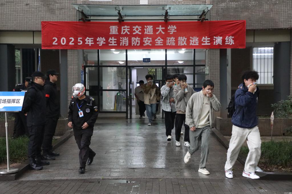 11月7日上午,重庆交通大学科学城学院、科学城后勤服务部、校区医院联合江津区双福消防救援站在学生德园小区3栋宿舍楼组织开展了2025年学生消防疏散演练。演练以“全民消防、生命至上——安全用火用电”为主题,旨在强化师生消防安全意识,提升应急疏散及自防自救能力,检验应急预案的可行性与消防安全设施的可靠性。科学城学院班子成员及科室相关同志、3栋居住学生、校区医务人员、安保队员、宿舍管理员等500余人参加演练、观摩。科学城学院副院长王鹤指挥演练。