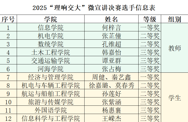 重庆交通大学2025年“理响交大”微宣讲比赛决赛获奖一览