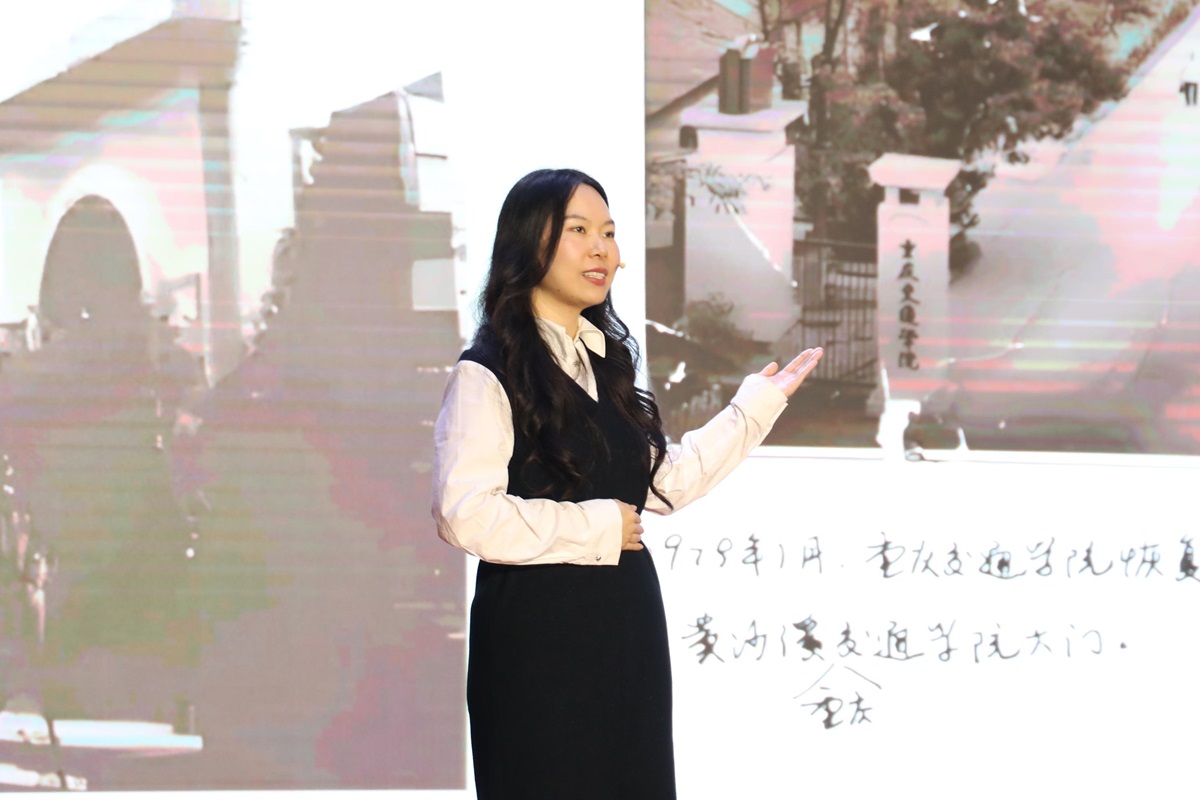 教师组选手宣讲题目紧扣专业特色与时代脉搏。交通运输学院谭亚群聚焦“安全智行新重庆”谈理想举措,河海学院张占梅畅谈“守护绿水青山”,机电学院张芷僮、土木学院韩嘉怡分别从“科技报国”和“梦想通途”的角度诠释“两路”精神,信息学院何梓言与数统学院孔维超则吐露出从“两路”到“智路”的学术报国志向。