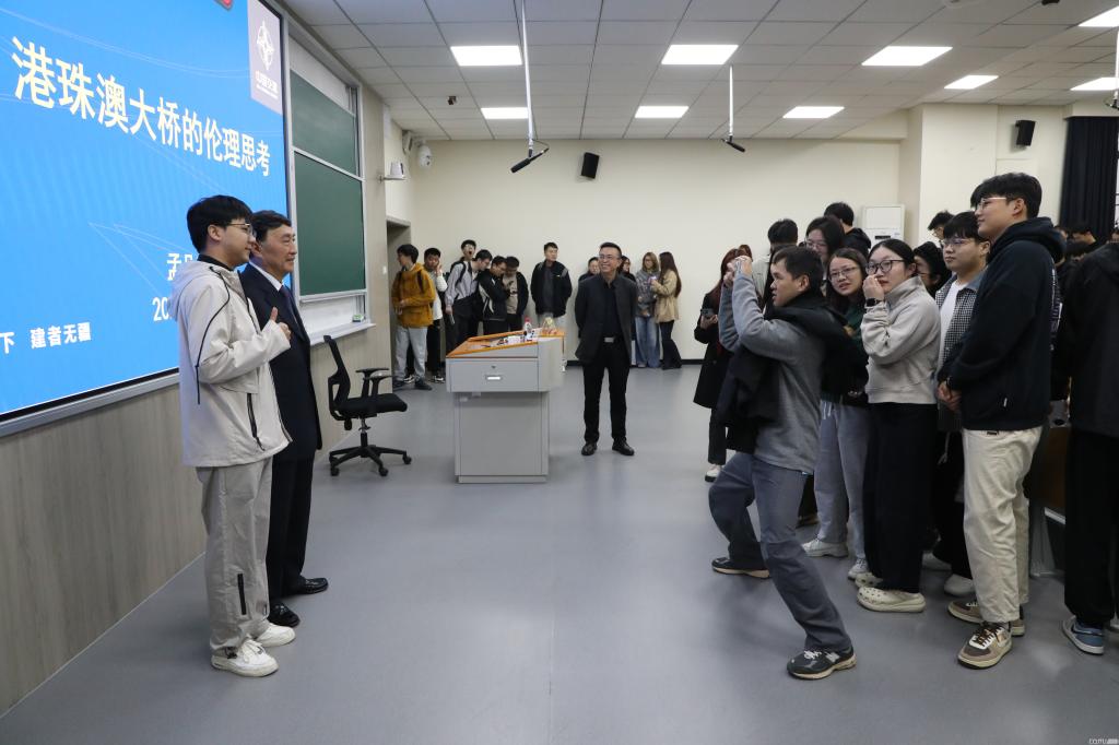 “港珠澳大桥不仅连接了粤港澳,更在我心中架起了一座标杆,它时刻提醒着我,学术研究既要有攻克难关的硬核精神,更要有服务国家战略的使命追求。”讲座结束后,2025级研一学生蒋沐坤表示,他深刻领悟到,各行业的顶尖成就离不开科技创新、精细管理与人文关怀的深度融合,未来学习和研究中,将以此为指引,努力追求卓越。