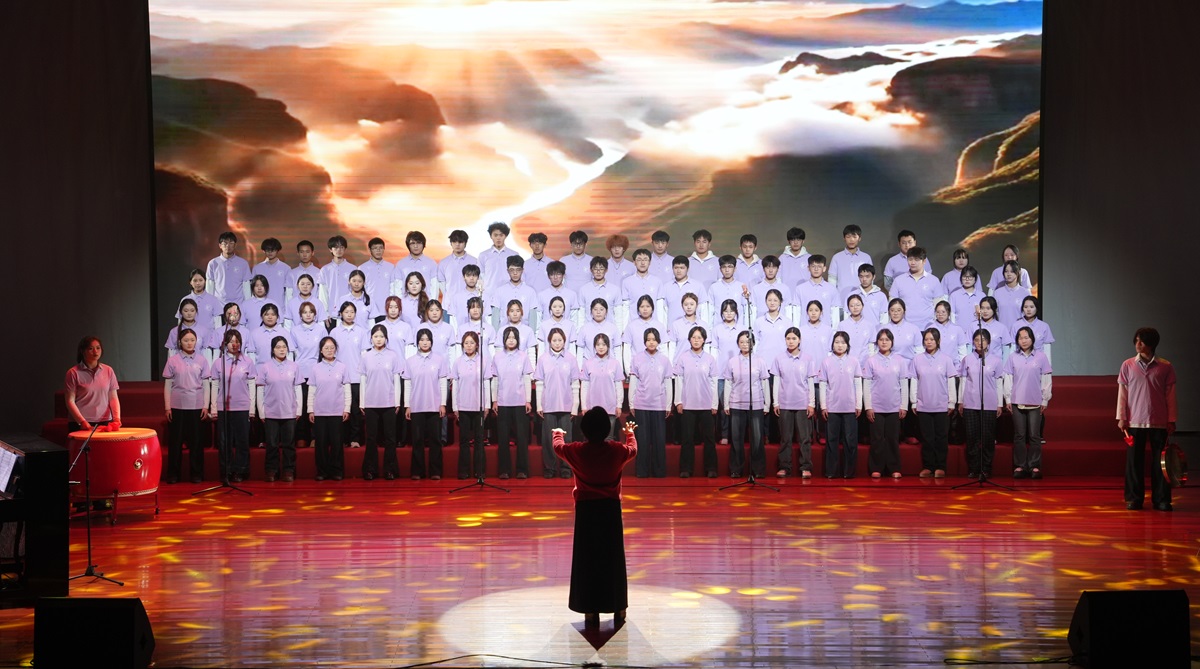 旅游与传媒学院合唱团演唱《黄水谣》,旋律深沉悠远,寄托着对黄河、对民族精神的深情礼赞。土木工程学院舞蹈《晨光曲》以柔美的肢体语言,在光影流转中勾勒出清晨烟火与人文温度。